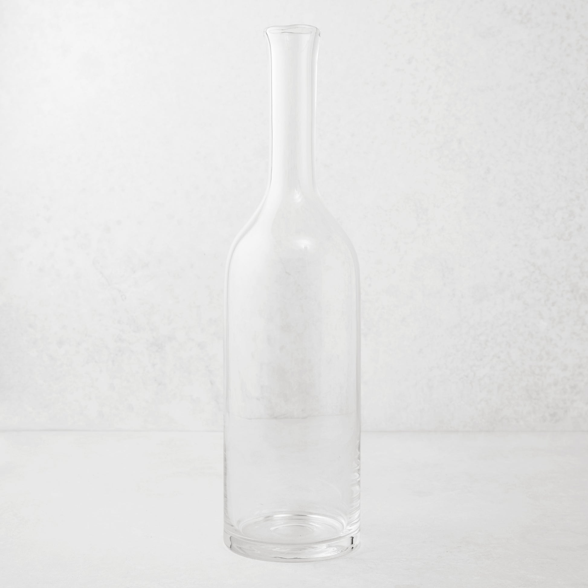 Inspired by the wine bottles served at European tables, the Romeo Carafe is an extra-large statement piece designed for gatherings. Crafted of mouth-blown glass, it features a scissor-cut rim, sheared by hand while the glass is molten. It can hold up to two bottles of wine, making it perfect for serving at dinner parties or as a decorative accent.