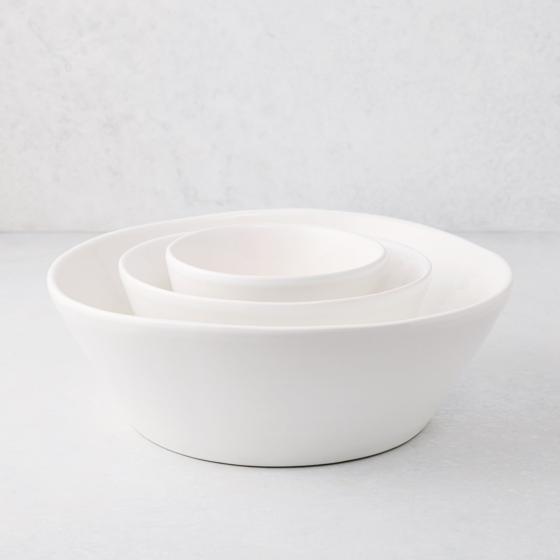 Handmade in Portugal, the Medium Spiral Serving Bowl is spun on a pottery wheel to create a unique shape that fits comfortably in your hands. High edges make it ideal for nuts or chips, while its clean profile maintains a sleek look. Choose as a single bowl or a set of three that stack seamlessly.