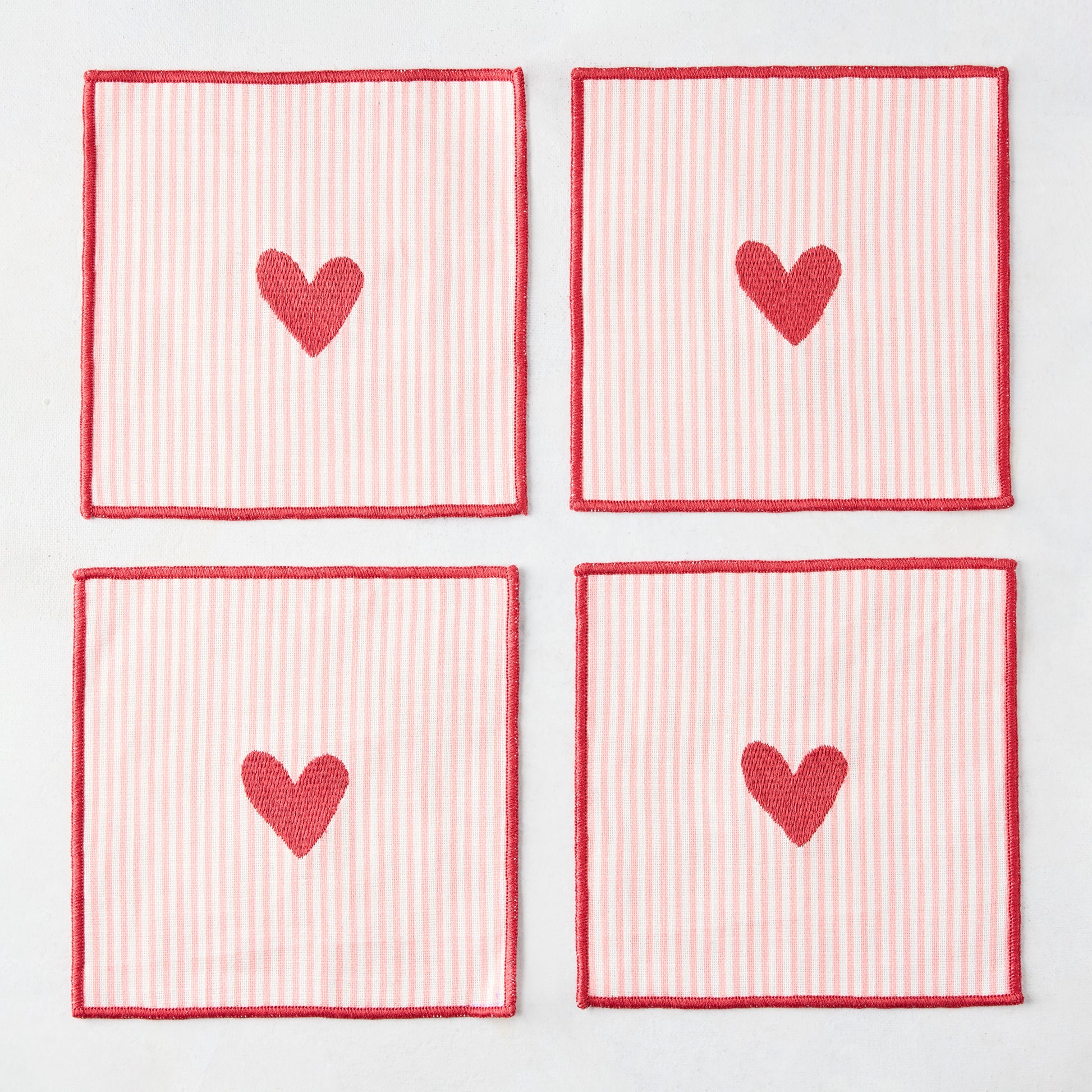 Embroidered Striped Heart Valentine's Day Coasters, Set of 4