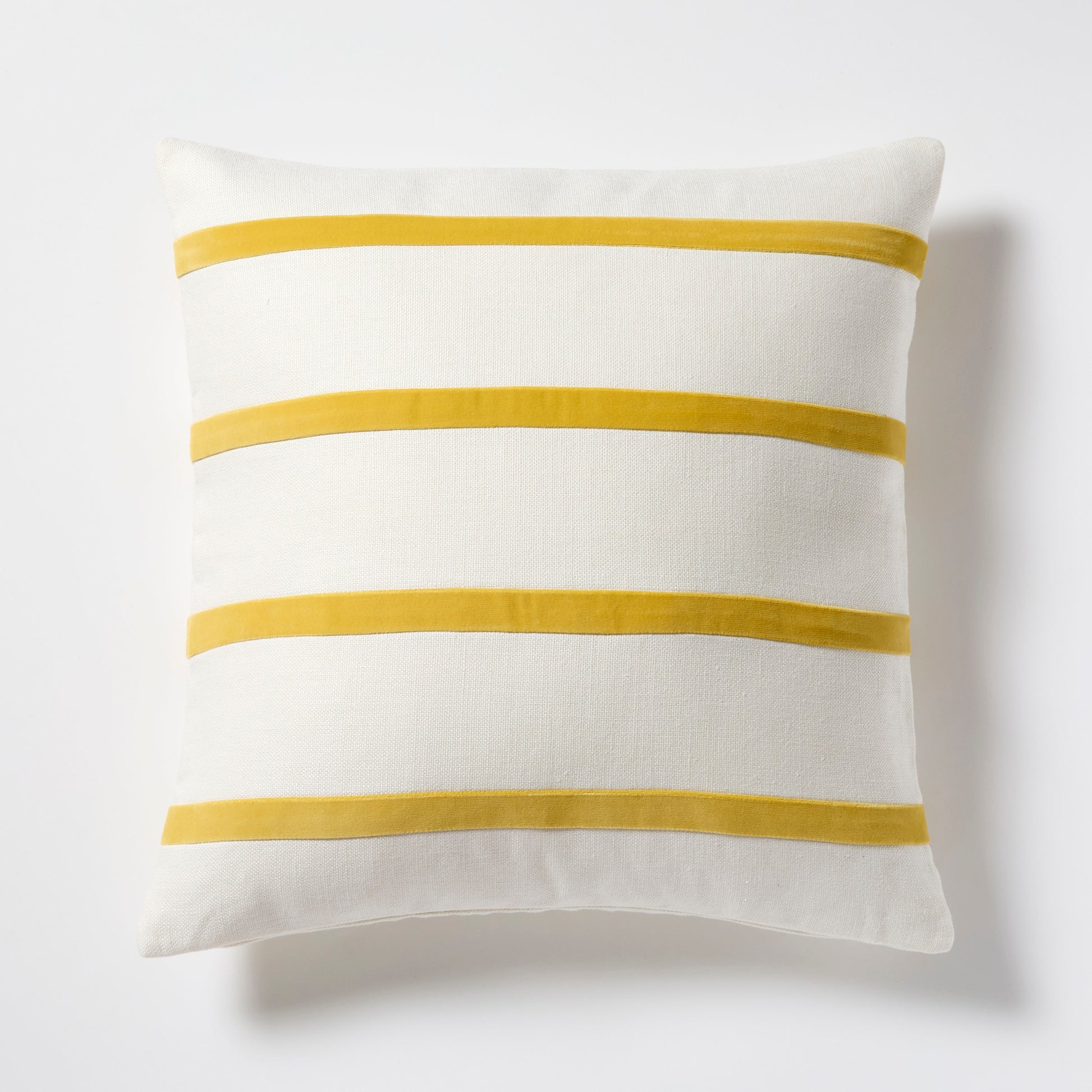 Sun Yellow and Ivory Thin Velvet Stripe Pillow