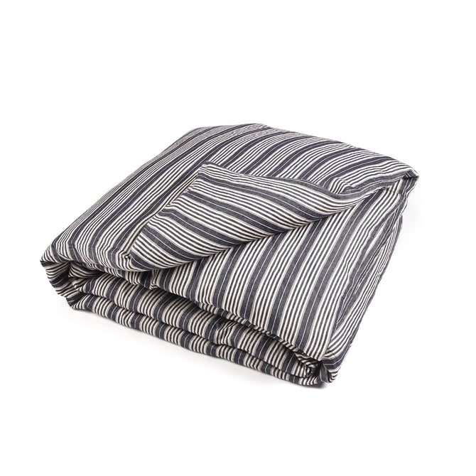 Bring a touch of European elegance to your home with the Tack Stripe Linen Duvet Cover. Crafted from 100% Belgian flax linen, this duvet cover is medium-weight made of tightly woven twill in a white sand and black stripe. Breathable, casually relaxed, and soft to the touch, this duvet cover is the perfect way to add a pop of style to any bedroom.