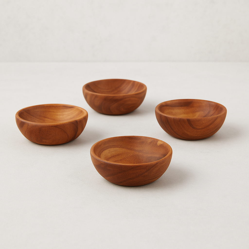 Elevate your food prep with the Teak Wood Pinch Bowls. With four bowls in a set, these bowls bring a modern and chic touch to any countertop. Perfect for separating seasonings while cooking, these bowls are both functional and stylish.