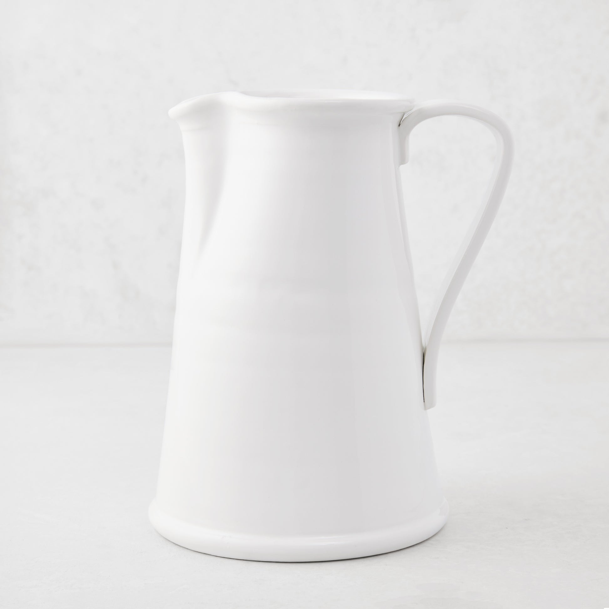 Bring Italian craftsmanship to your home with the Tivoli Ceramic Pitcher, a statement piece for any gathering. Crafted in Italy, this pitcher features our signature white glaze and a simple, yet elegant, flat handle. It is generously sized, ideal for entertaining and serving groups, or for displaying your favorite flowers.
