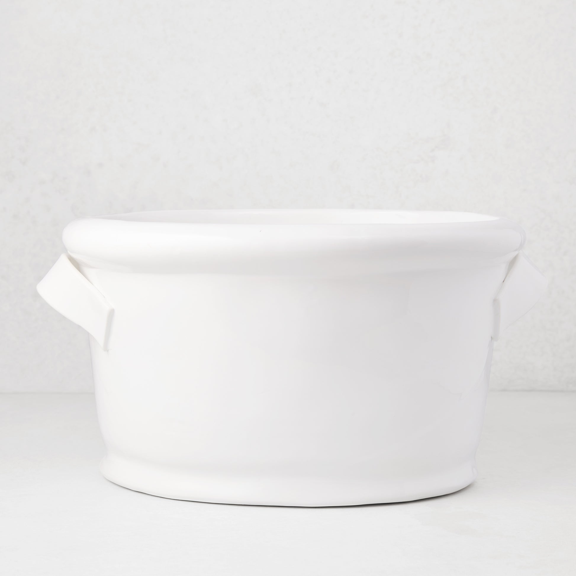 Bring Italian craftsmanship to your home with the Tivoli Ceramic Ice Bucket, a statement piece for any gathering. Crafted in Italy, this ice bucket features our signature white glaze and two simple, yet elegant, handles. It is generously sized, ideal for keeping your favorite bottles cold, or for displaying a large bouquet of your favorite flowers.