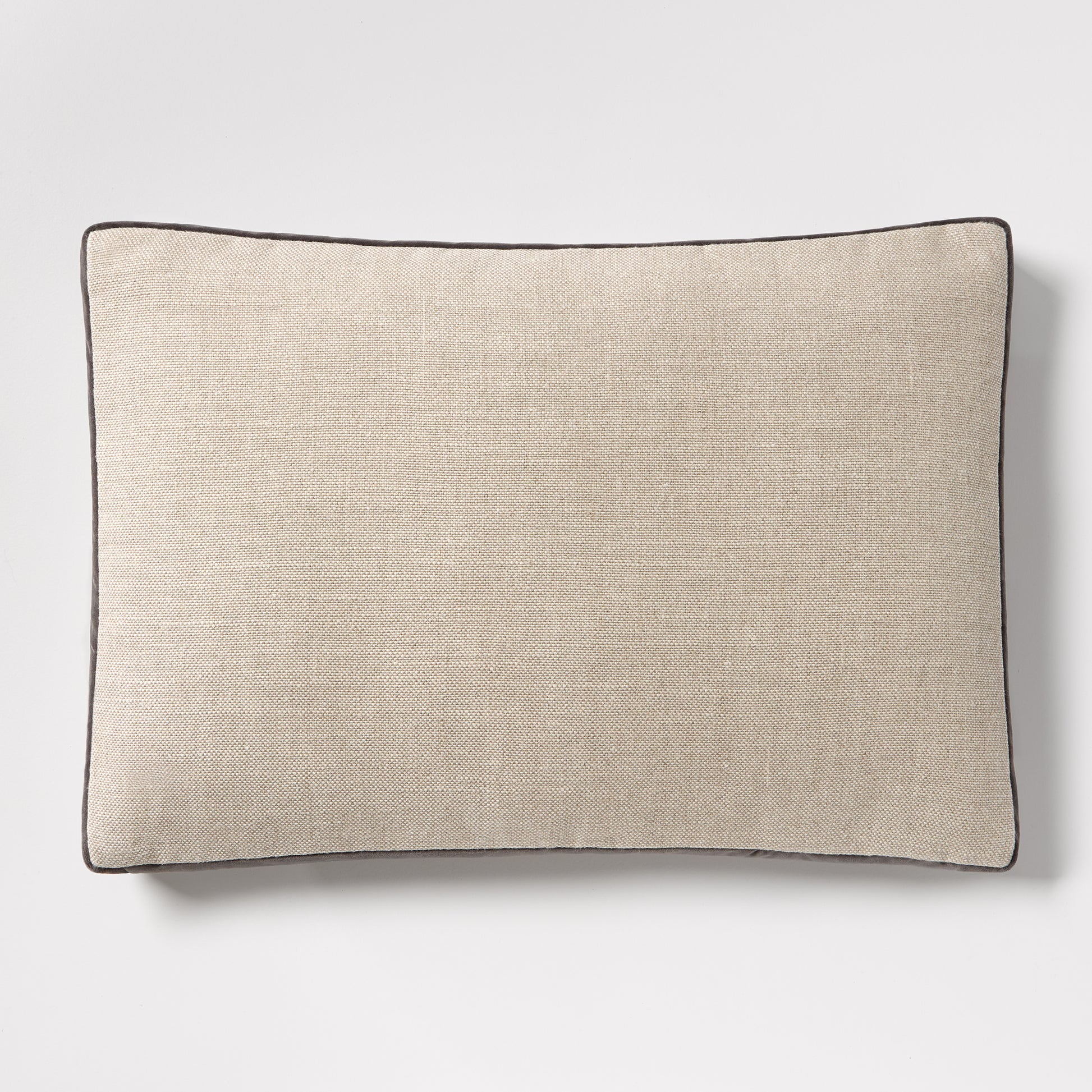 The Slate Grey Velvet Gusset and Flax Linen Lumbar Pillow is custom made exclusively for Hudson Grace. Made from Belgian Linen and cotton Velvet, these pillows are stuffed with down feathers to be the perfect addition to your home.