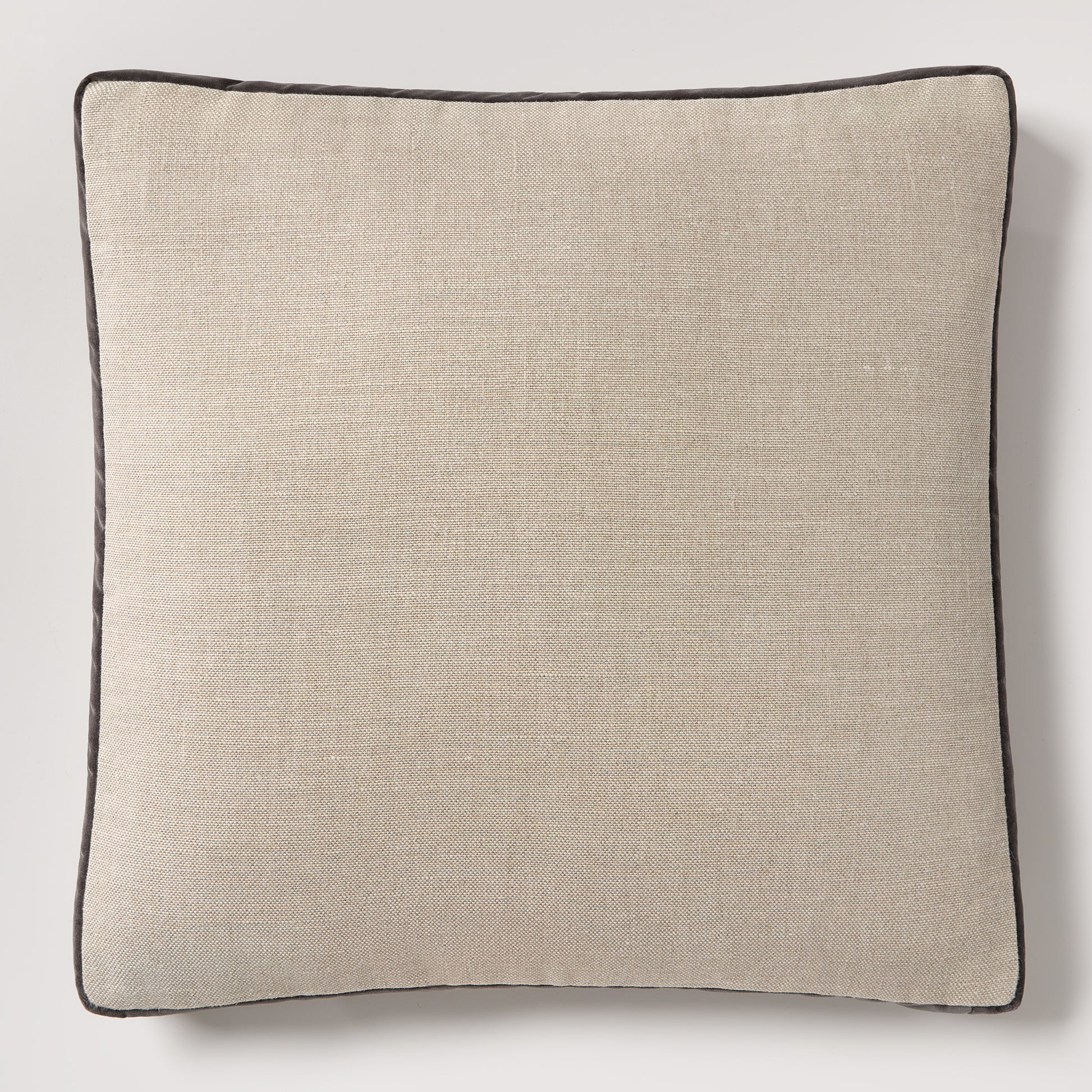 The Grey Velvet Gusset and Flax Linen Square Pillow is custom made exclusively for Hudson Grace. Made from Belgian Linen and cotton Velvet, these pillows are stuffed with down feathers to be the perfect addition to your home.