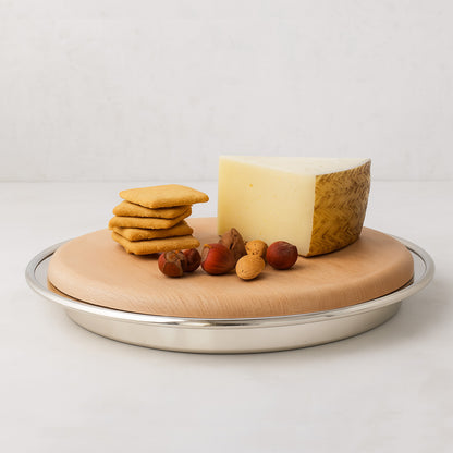 A unique find for Hudson Grace from London, a Vintage Silverplate Cheese Board. Having served guests for years at noble estates or a world-renowned hotel, this cheese board has been replated and polished to perfection. The wood portion is new, sanded smooth, and finished with a food-grade mineral oil. Serving cheese and charcuterie will delight and intrigue your guests.