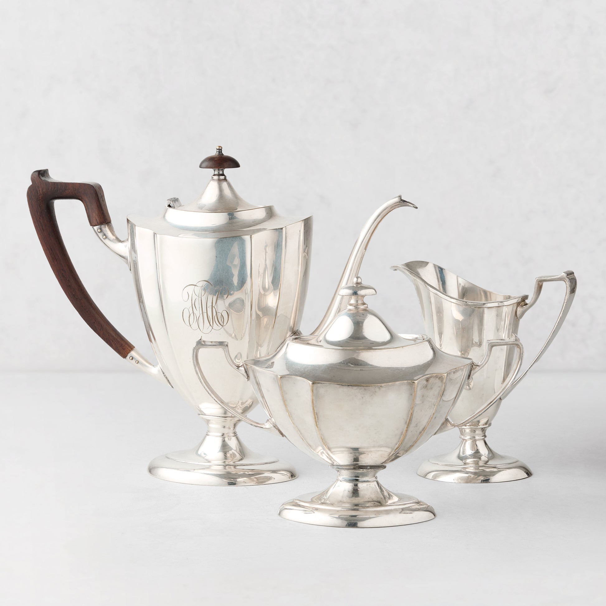 Vintage Silverplate 3-Piece Scallop Engraved Tea Set