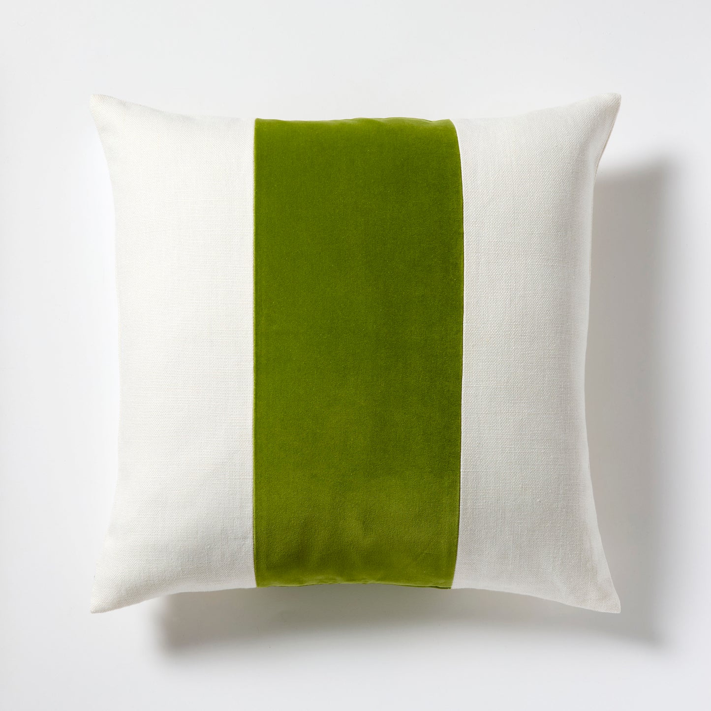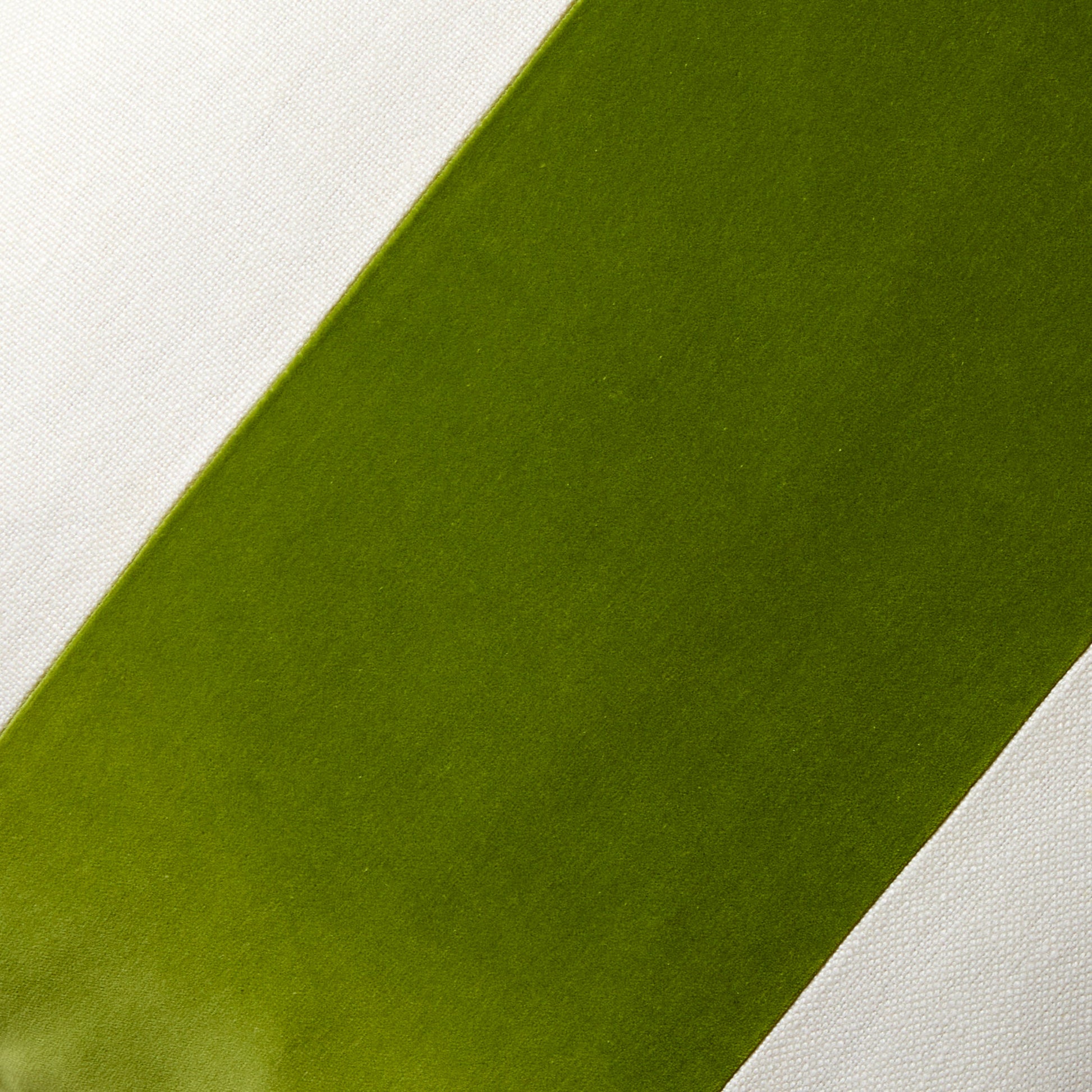 Wasabi Green Wide Velvet and Linen Stripe Pillow