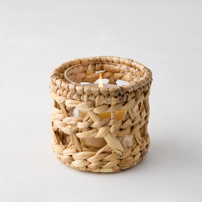The Woven Hyacinth Votive Holder is a versatile decor piece that combines natural fibers with a modern shape. Its natural color and organic texture seamlessly blend with coastal and traditional decor, making it perfect for any home. Display alone to add a touch of texture, or scatter them along your table for the full effect.