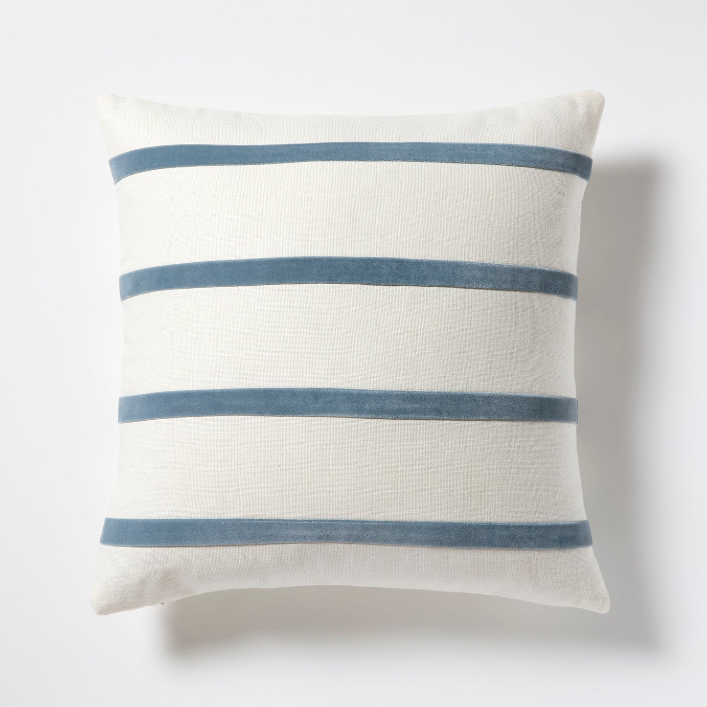 Wedgewood Blue and Ivory Thin Velvet Stripe Pillow