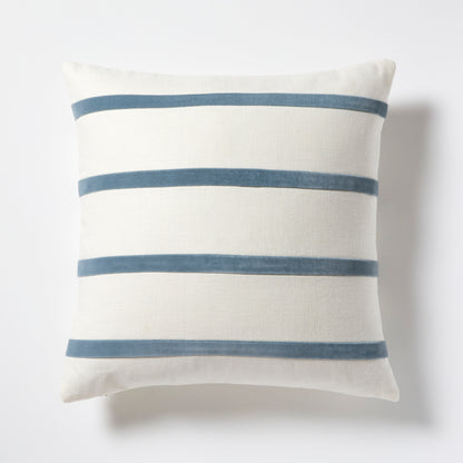 The Thin Velvet Stripe Pillow is custom made exclusively for Hudson Grace. Made from Ivory Belgian Linen and Wedgewood Blue Cotton Velvet, these pillows are stuffed with down feather to be the perfect addition to your home. With a range of colors and styles, these pillows are perfect for mixing and matching to fit in with any style of decor.