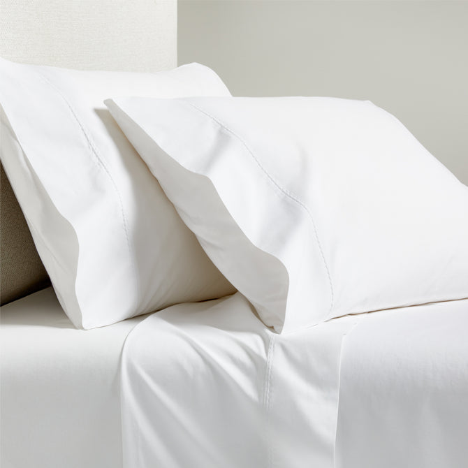 Bold and classic, our Italian Percale White Diamond Collection takes a cue from the bedding we found in the finest European boutiques and hotels. The White Diamond Percale Sheet Set is cool and crisp, softens with wash and use, and is the perfect way to tuck into luxury every night. It is woven from extra-long staple cotton in a 310-thread-count percale. The tailoring and white diamond detail in a sophisticated color palette make this a versatile collection that layers easily with other bedding and interior style.