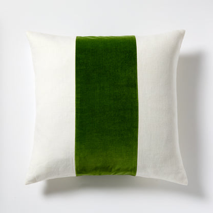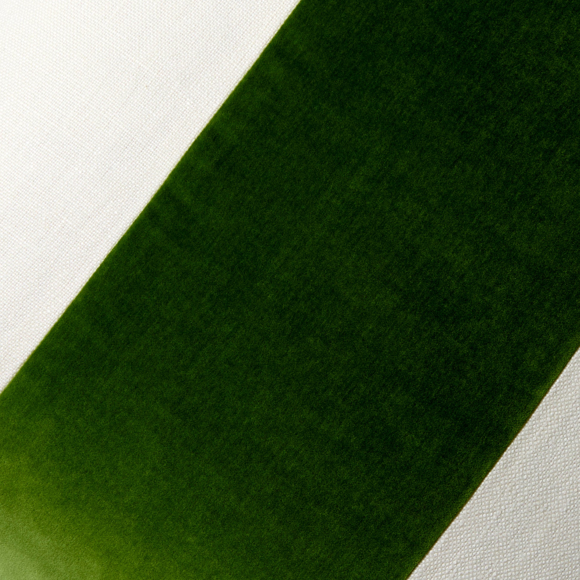 The Wide Velvet and Linen Stripe Pillow is custom made exclusively for Hudson Grace. Made from cream Belgian Linen and Kiwi Green Cotton Velvet, these pillows are stuffed with down feather to be the perfect addition to your home. With a range of colors and styles, these pillows are perfect for mixing and matching to fit in with any style of decor.